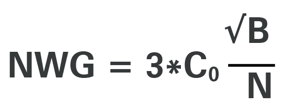Um niedrige Nachweisgrenzen zu erreichen, ist eine Kombination aus hoher Empfindlichkeit und niedrigem Untergrund wichtig. Dies wird deutlich, wenn man sich die folgende Gleichung ansieht, mit der die Nachweisgrenze (NWG) abgeschätzt wird.
